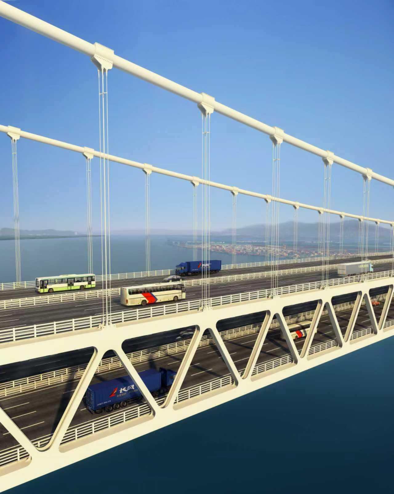 狮子洋大桥做为项目标环节节制性工程,以其从跨2180米的超大跨径,一跨过江,建成后将创下双层悬索桥“从跨跨径(2180米)、从塔塔高(342米)、锚碇根本(曲径130米)、从缆规模(曲径1。5米)、车道数量(上下双层16车道)”五项世界第一。